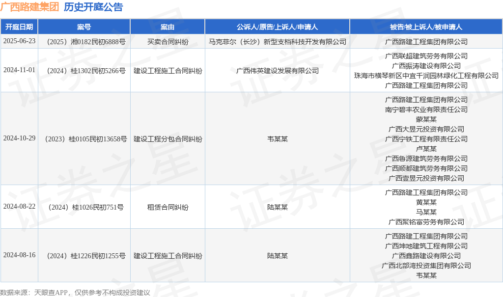 本站消息资炒股门户,根据天眼查APP显示资炒股门户,近日公布了一则广西路建工程集团有限公司作为被告/被上诉人的开庭公告,详细内容如下: