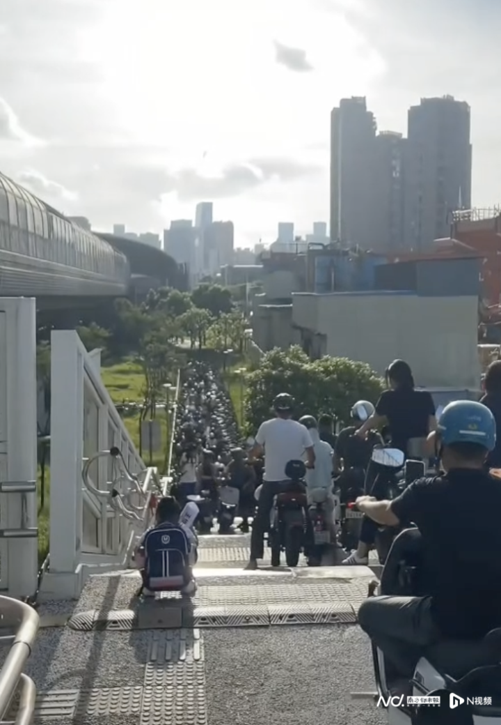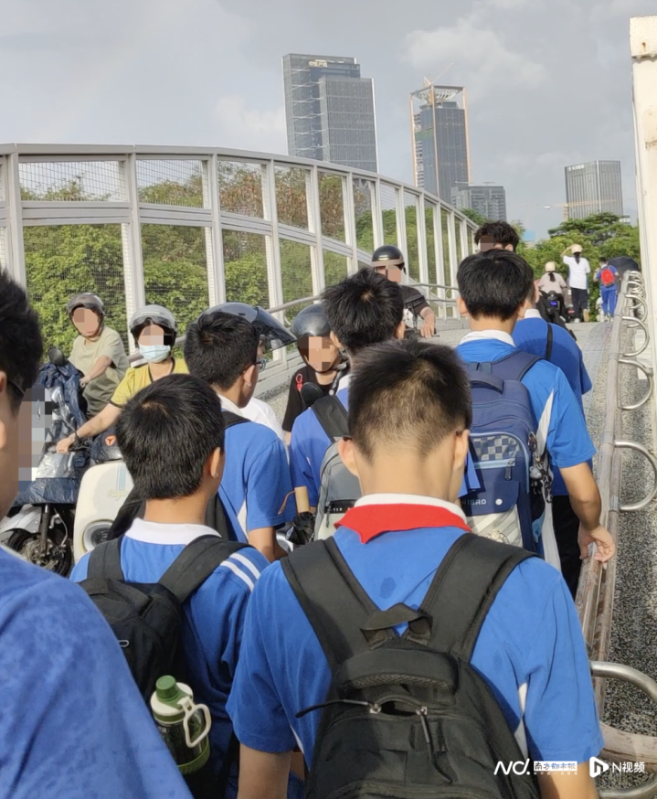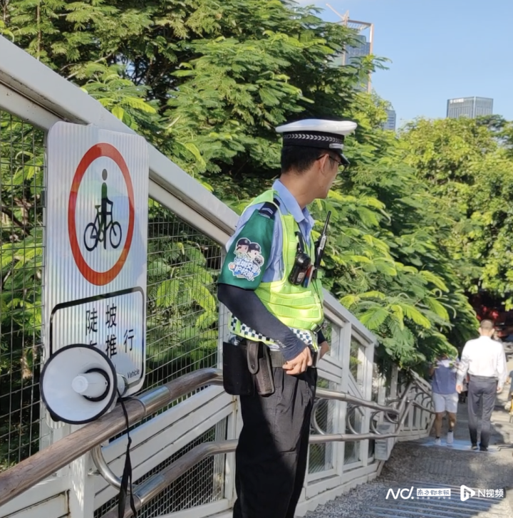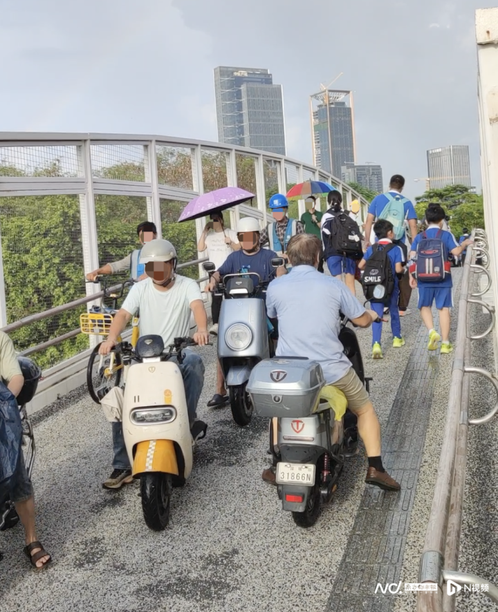 交警部门观察到,新学期以来月亮湾大道东侧的新增生源通过该天桥前往前海港湾学校,上下学高峰时段呈现人流车流叠加现象。“天桥2021年建成时以行人通行为主,而当前电动自行车通行需求明显增加。”南山交警大队相关负责人表示,若完全禁止电动自行车上桥,市民需绕行较远距离,且天桥两端无充足的车辆停放空间,可能会引发新的安全隐患,目前更可行的做法是通过现场疏导与秩序规范提升通行秩序。