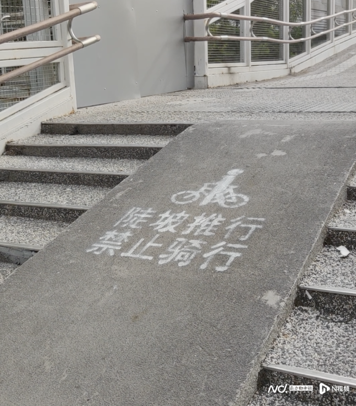 经前期排查发现,该天桥在通学高峰时段行人、非机动车较多,0.55米宽的坡道无法满足非机动车通行需求。为缓解该情况,该局已于2023年12月将该天桥的推行坡道拓宽为1.15米,并将铺装优化为防滑效果较好的纳米有机硅。